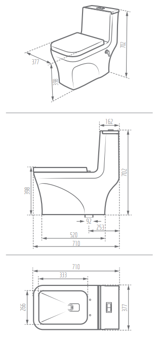توالت فرنگی یک تکه کاتیا از نوع خروجی به کف یکی از محصولات با کیفیت شرکت چینی بهداشتی مروارید است که با آکس 253 میلی متر تولید می شود
