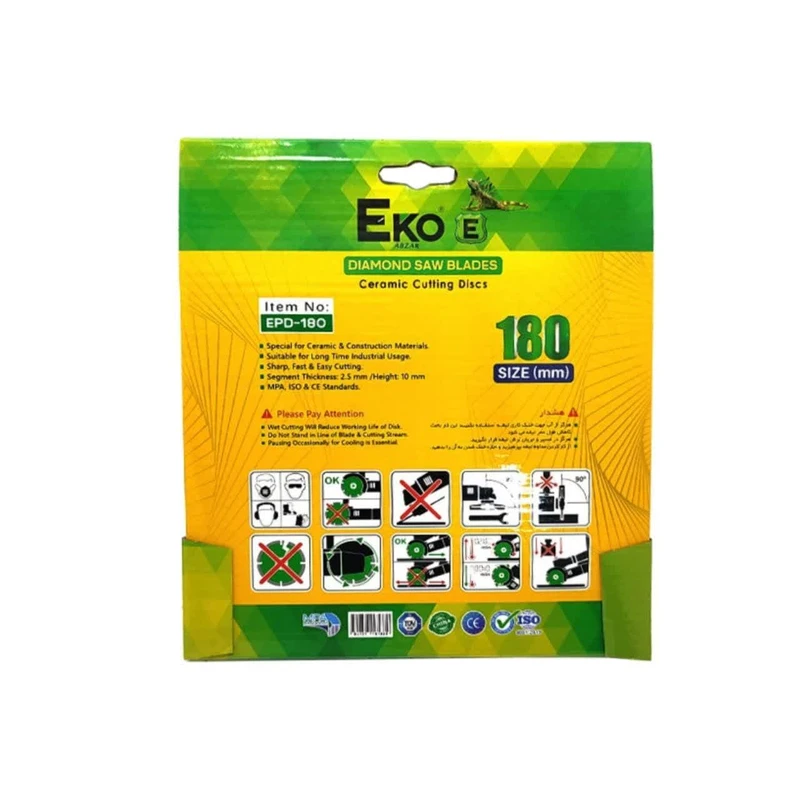 حداکثر سرعت : ۸۵۰۰ متر بر ثانیه قطر شفت : ۲۲.۲ میلیمتر قطر صفحه : ۱۸۰ میلیمتر کاربری : سرامیک , سنگ , گرانیت